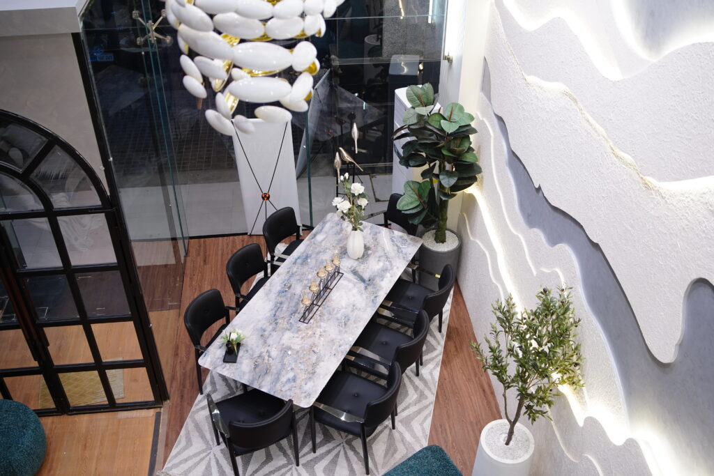 Modern Elegance Dining is designed for those who appreciate sophistication, comfort, and contemporary style in every detail. This collection blends clean architectural lines with luxurious finishes, creating a dining atmosphere that feels both refined and welcoming. Crafted with exceptional attention to detail, each piece showcases a balance of modern simplicity and timeless elegance.The dining table becomes the centerpiece of the space, featuring premium materials and a smooth, artfully finished surface that invites gatherings, conversations, and shared experiences. Surrounding chairs are thoughtfully upholstered to offer both comfort and visual harmony, enhancing the room with soft curves and rich textures. Metallic accents, sculptural elements, and balanced tones complete the aesthetic, giving the dining area a polished, high-end look.